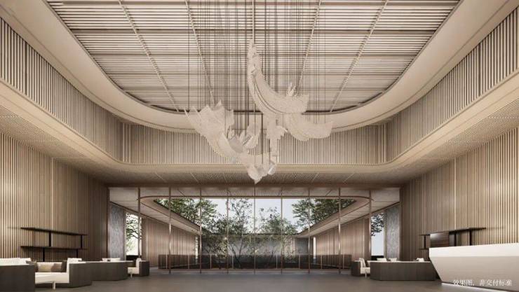 ◎长达约120米弧形主入口界面,城市级封面门庭,集萃名贵奢石臻造,铺陈都会风华,礼遇当代门庭,呈现繁华CBD里的曼妙意境。