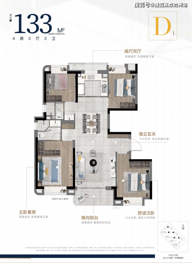 居住感上要直逼160㎡以上的4房户型了,性价比很高的改善优选!