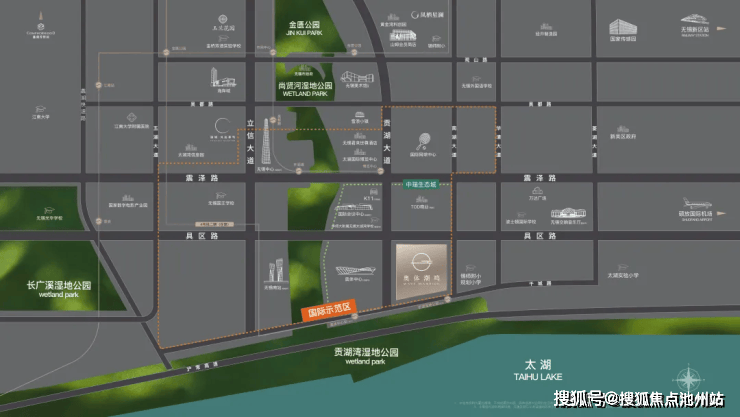 地理位置:地处滨湖区南湖大道与干城路交叉口正西方向276米左右,紧邻无锡奥体中心,一线太湖湾岸,约500米近享亲湖优势,尚贤河湿地公园、贡湖湾湿地公园交汇。