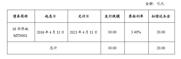 据了解,发行人本期中期票据募集资金拟用于偿还2021年4月11日到期的16华侨城MTN001,明细如下: