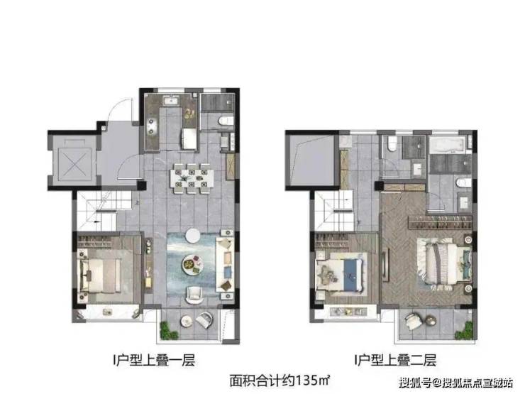 除此之外,项目还有建面约135㎡3房2厅3卫上叠、建面约148㎡4房2厅3卫中叠以及建面约148㎡4房2厅3卫下叠。叠墅产品上有露台下有庭院!