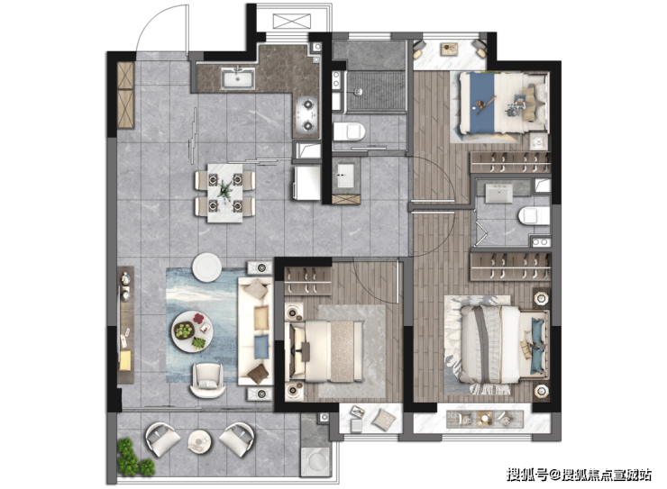 同时该户型还带大尺度阳台;以及步入式衣帽间,给予生活更多从容。