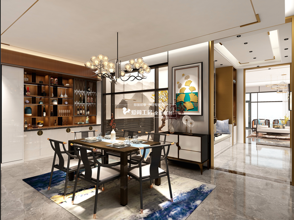 而深木色的新中式餐桌配搭暖光灯,温暖的就餐氛围、谈笑风生的家人、热气腾腾的饭菜会让人觉得神仙生活不过如此。
