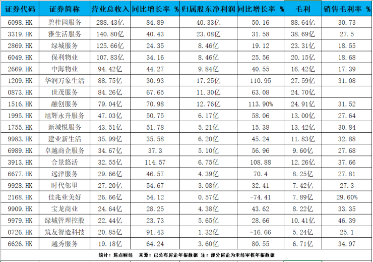 反观物企营收排行前8位,碧桂园服务、雅生活服务、绿城服务、保利物业、中海物业、华润万象生活、世茂服务、融创服务营收增长率分别为84.89%、40.43%、24.35%、34.16%、44.27%、30.93%、67.65%、70.98%,营收增长率超过40%以上的占到一半。