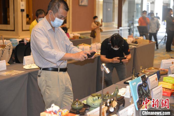 中新网海口11月4日电 (符宇群)2021海南省第六届旅游商品大赛暨文昌市十大旅游商品评选、参选2021中国特色旅游商品大赛评选活动颁奖典礼4日在海口举行。当天,现场展出了参加大赛评选活动的部分获奖作品,这些作品不仅具备实用性、创新性、市场性和品牌性等特性,还彰显了浓郁的海南元素。