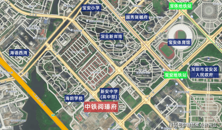 其中,海韵学校为九年一贯制公立学校,就在项目的北侧,创建于2013年,随着生源质量的提升,2019年第二次参加中考,成绩就冲进全市前30,宝安区前5,均分高达385.5,比南外大冲还高5分,被称为黑马学校。