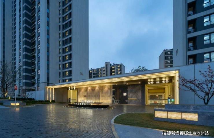 入口门庭威严大气,采用典雅的金属框架门头,突出入口空间的仪式感与尊贵氛围。