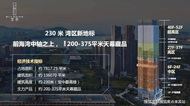 地标建筑:建筑高度约230米,为宝中区域最高楼,成为前海湾中轴的标志性建筑,塑造独特城市天际线,彰显尊贵身份。