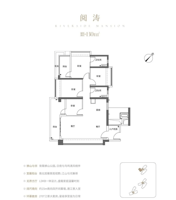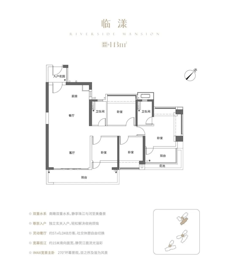 在售梯户比:3梯3户,3梯4户 (一线江景)