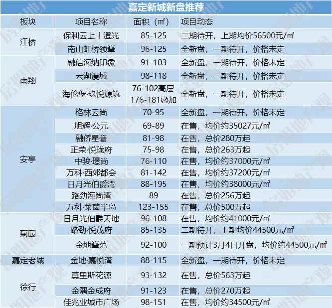 五大新城是未来之城,综合潜力可期。与此同时,新城内的新盘也越来越受关注,那么新的一年里,嘉定、松江、青浦、奉贤、南汇(临港)这五个新城的新盘有哪些?适合谁买?小编精选了部分楼盘,供大家参考: