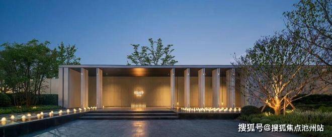 项目为打造公园里的好房子,南侧主动退让城市道路最远处约50m,打造约3500m²一重园景观,包含【登门望璟】门庭、【列柱中庭】塘岸游廊、【曲院泊风】奢级礼制车马院、【浮光春晓】下沉式庭院等四境。