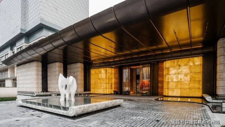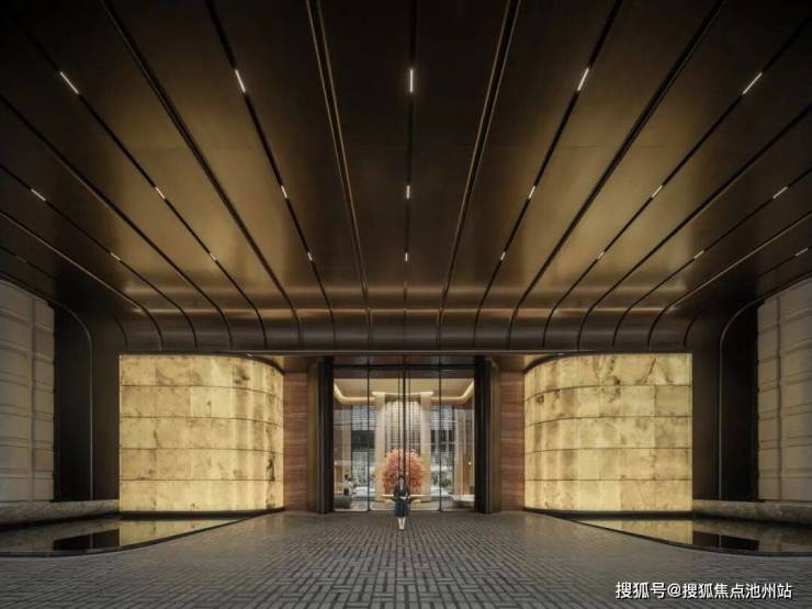 社区主入口以杭州博物馆镇馆之宝玉琮为灵感原型,将古玉琮的形制抽象转译为序列感的柱廊与台地造型;立面材质亦提取玉琮的温润色泽与肌理,以此呼应江南深厚的历史文脉与东方底蕴。