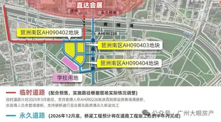 一是临时道路,会搭设黄埔涌便桥,连接琶洲中区,计划2025年约一季度建成;