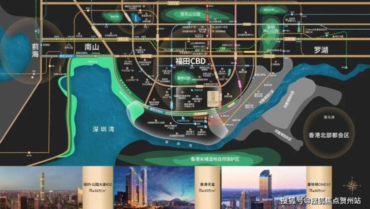 周边环绕超500公顷的360度环幕景观,北看福田CBD繁华城市景观、南看香港米浦,西看深圳湾、东看罗湖城市景观,集萃深圳中心最高端丰盛的景观资源,创造完美的城市生活平台。