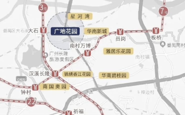 广地花园的地理位置颇具优势,坐落在番禺大道北华快出口旁,与天河区一江之隔,自驾经华南快速、新光快速15分钟可达珠江新城,日常通勤十分便捷。