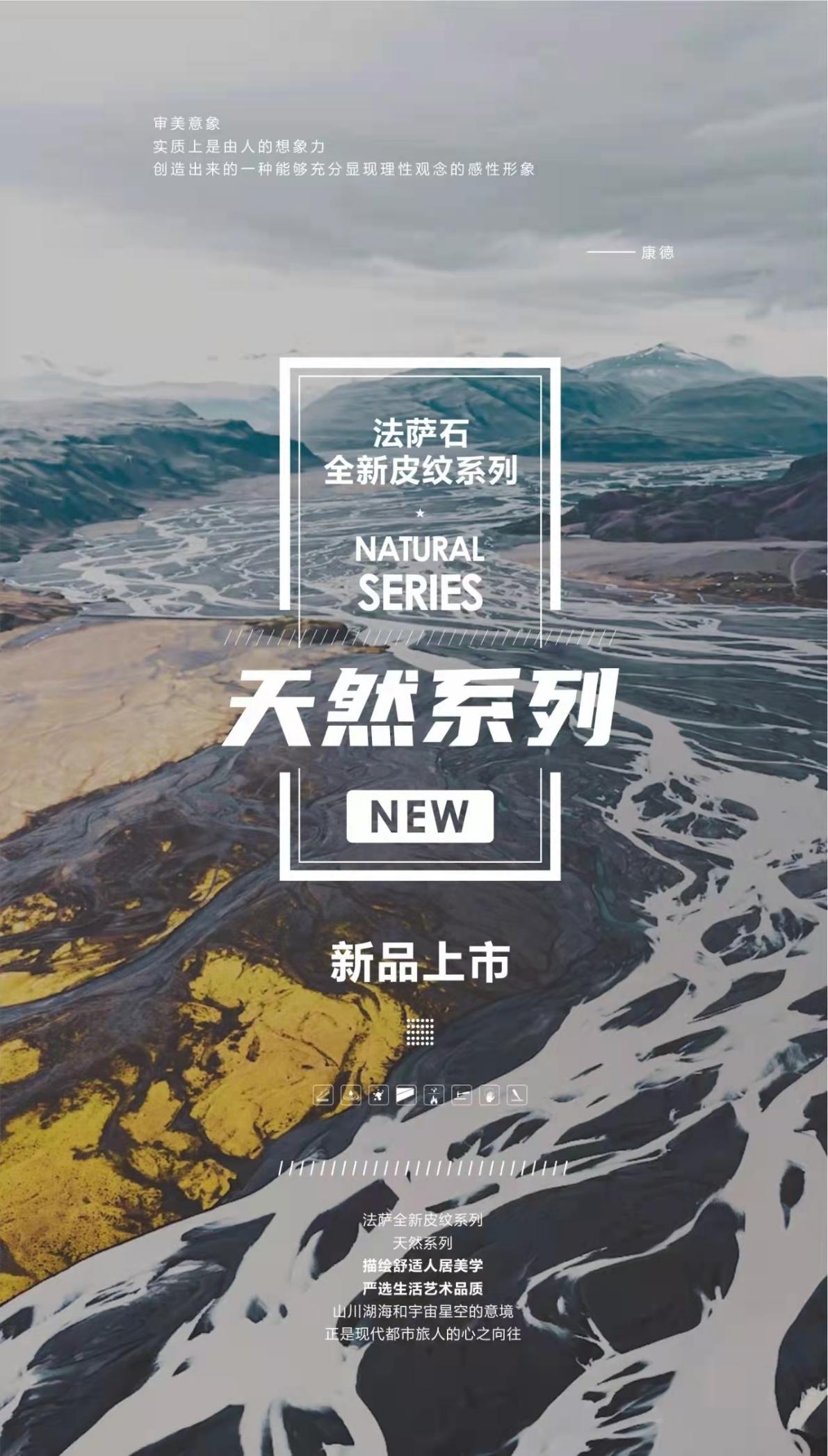 国潮是一种国际风文化浪潮,一种新鲜的生活方式,更是文化自信的表达,在国潮席卷各行业的趋势下,建材行业也不例外。法萨石作为石英行业的天花板品牌,将产品和国潮结合,打造出精致时尚的质感产品。 法萨石皮纹产品,天然系列描绘舒适人居美学,严选生活艺术品质,山川湖海和宇宙星空的意境,正是现代都是旅人的心之向往