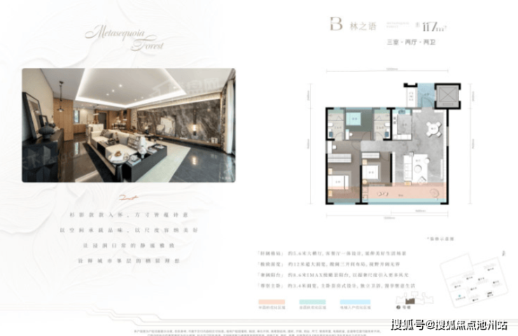 如果说106㎡户型是刚需的“性价比之选”,那么117㎡户型则是刚需家庭的“改善跳板”。约12米的超大南向面宽,打造出三开间朝南的敞阔格局,无论是客厅还是卧室,都能享受充足的阳光照射。约5.6米的大横厅设计,将客餐厅融为一体,形成超大会客空间,无论是家庭聚会还是朋友来访,都能从容应对。