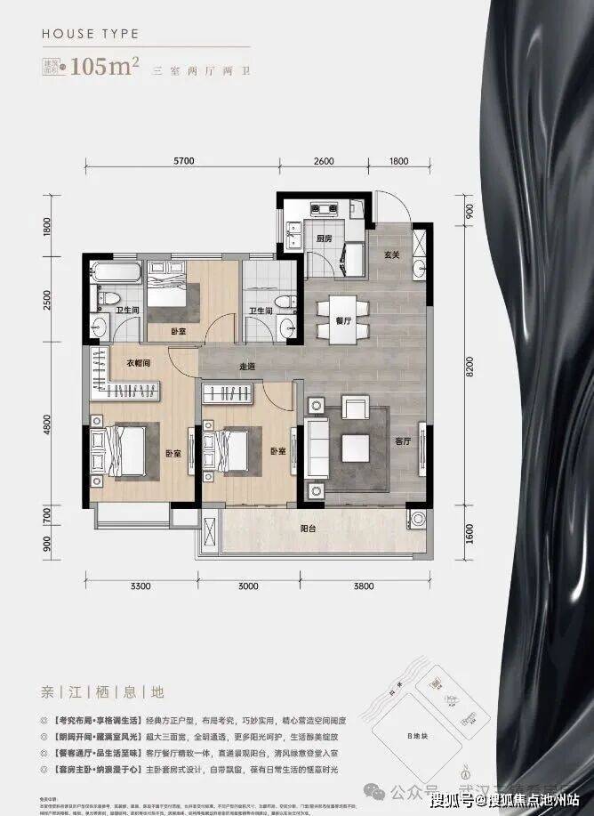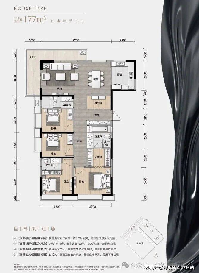 🏠约177㎡一线无遮瞰江阔境,首排滨江,享震撼观江视野(位于A1#边户)(转角阳台户型)