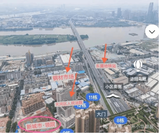 城市领院位于黄埔大道的北侧,靠近鱼珠,南向望江,和金融城东区直线距离约300米左右,跟兰亭盛荟只有一路之隔。