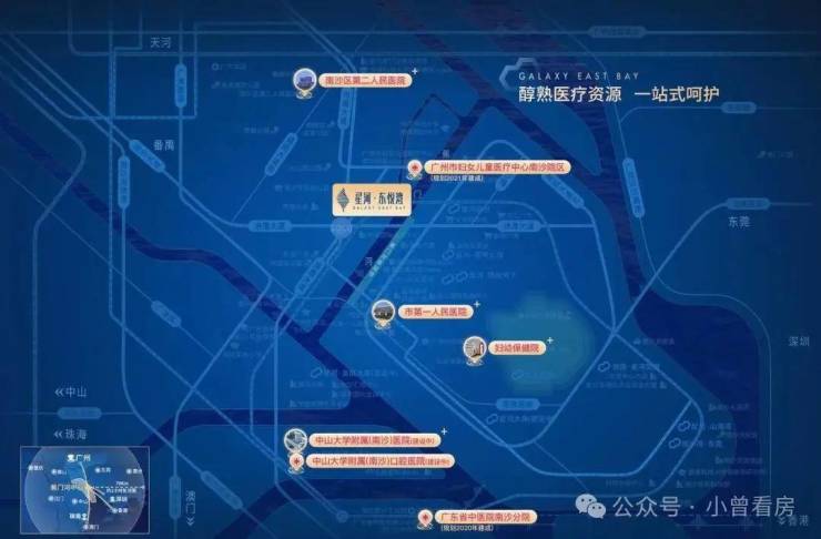 5分钟可达南沙妇女儿童医疗中心,3公里内南沙中心医院、中大附属口腔医院、中大附属第一医院聚集。
