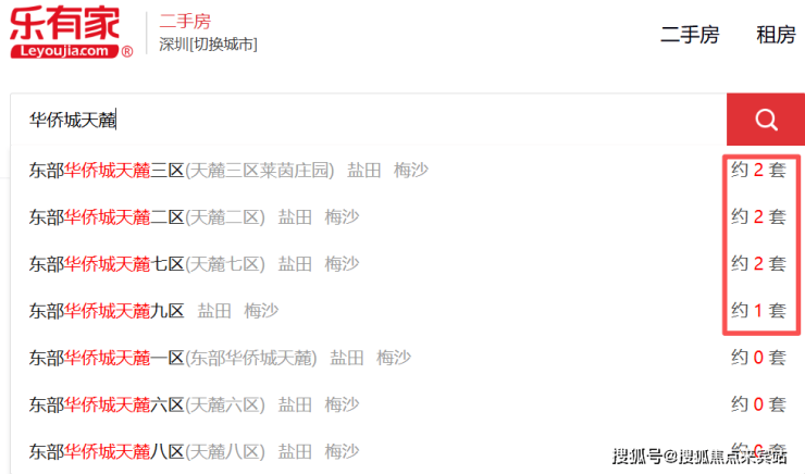 我们在文乐有家数据上,其实发现数量其实更少,整个华侨城天麓1-9区,我们挂盘只有7套。