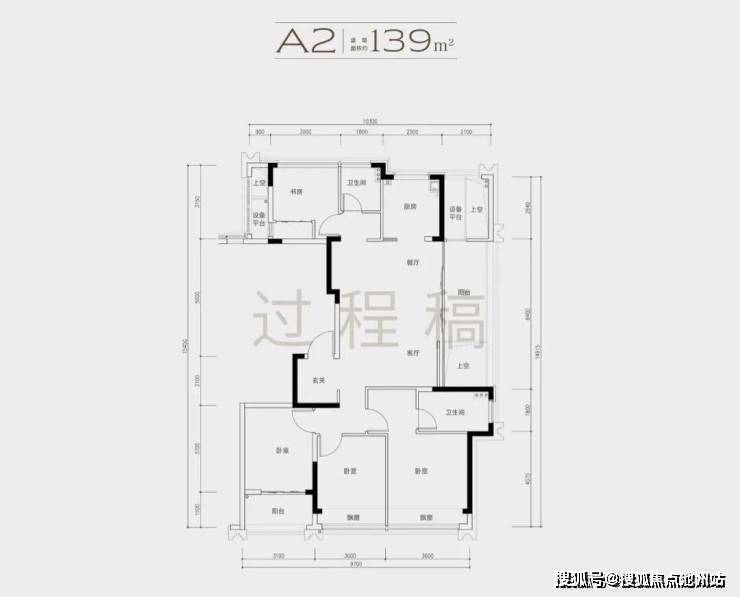 170方户型,是南厅139方户型的放大款,次卧多了一个套房空间。