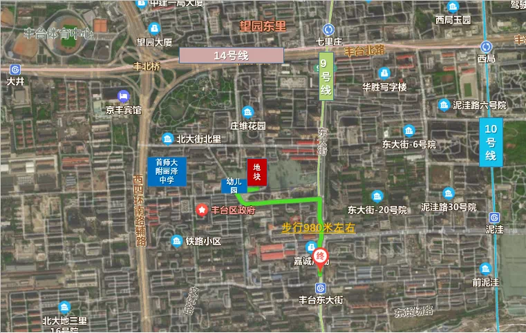 不过共有产权房地块很小,周围很有居住氛围,都是居民楼,西南角有幼儿园,西侧是首师大附丽泽中学,大家可以点下方相对位置图了解。