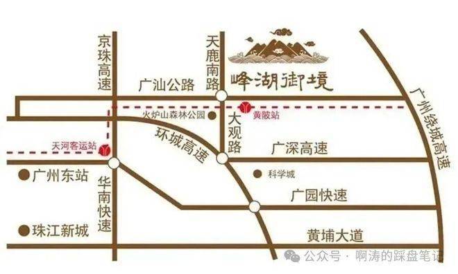 在城市通达性层面,项目与地铁6号线黄陂站保持合理距离,兼顾静谧与便捷。多条主干道及高速路网贯通科学城、珠江新城及天河核心区,自驾通勤时间可控。对于高净值家庭而言,通勤效率与居住舒适度必须并行,而不是二选一。峰湖御境的选址逻辑,正是将产业中心、行政配套与自然资源整合于一个合理半径之内。