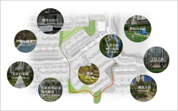 社区内部还打造约500米中央景观大道,归家途中移步异景,微风吹拂,绿荫环绕。还有北境雅致园林和南境意趣园林,可以茶余饭后,享受自然惬意。漫步在社区,全龄景观体验场景,雅趣共品,勾勒出一幅与家人共享的美好生活场景。
