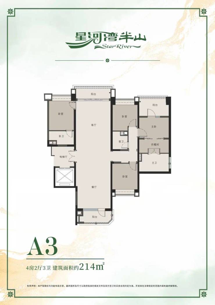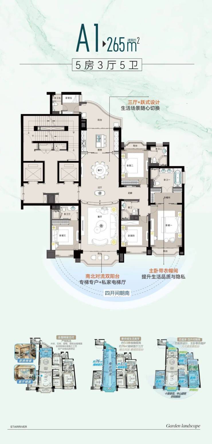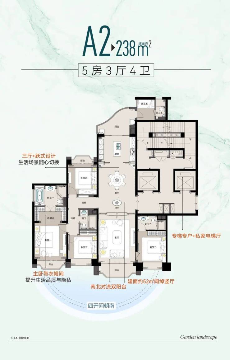 项目在售户型丰富多样,涵盖130㎡ - 265㎡。130㎡ - 147㎡三房两厅两卫,简装价格2.5 - 2.7万/㎡,精装价格2.8 - 3万/㎡,满足刚需与改善需求;214㎡四房两厅三卫,毛坯价格2.7 - 2.9万/㎡,位于小区最南排山景头排,远离市政道路,私密安静,拥有山、园、城市三重景观,是小区唯一2164㎡绝版户型,也是200㎡ + 产品中唯一非跃式户型,通透齐整,方便老人居住,南北通透板式布局,专梯入户,3.4米极致层高,约50㎡礼宾级会客厅,四开间朝南,约16米纯南向面宽,四房三卫双套房,尽显尊贵奢华,全盘仅78套;238㎡五房三厅四卫、265㎡五房三厅五卫,豪装价格4.2 - 5万/㎡,空间更为奢阔,满足高端品质生活追求。