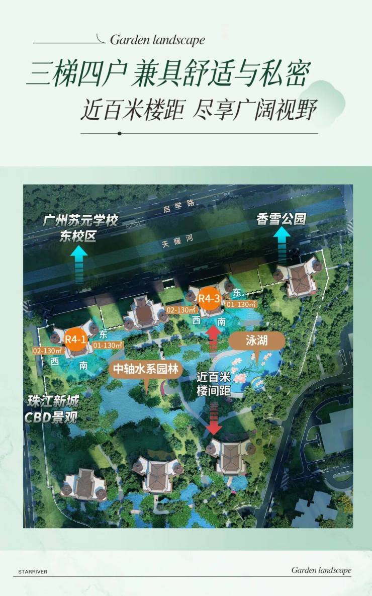 小区园林独具特色,堪称一岛一栋醉美园林。近10000㎡的护城河、泳湖、荷塘三重水系构成园林灵魂,水木亭桥相映成趣,与窗外山景构成山水画卷,诠释古典意境。同时,小区还是名树博物馆,秋枫、荔枝、人面子等名贵树种全冠移植,入住即享绿树成荫。此外,小区坡地设计,首期比市政道路抬高9米,自带豪宅气势;北向望一线香雪公园,南向百米楼距瞰中心水景园林,视野开阔;3.3 - 3.5米奢阔层高,约130 - 265㎡奢阔户型,尽显豪宅尺度。