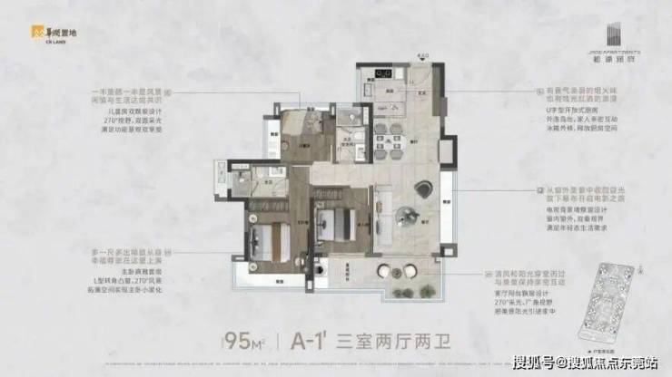 松湖润府主力户型有95㎡、105㎡、125㎡、143㎡不同面积段,多种户型可选,而且各有特色。其中,约95㎡的面积段就做了3个户型,尽管是面积段最小的户型,但在LDKB一体化布局和阳台扩大化的加持下,有120㎡的尺度感。