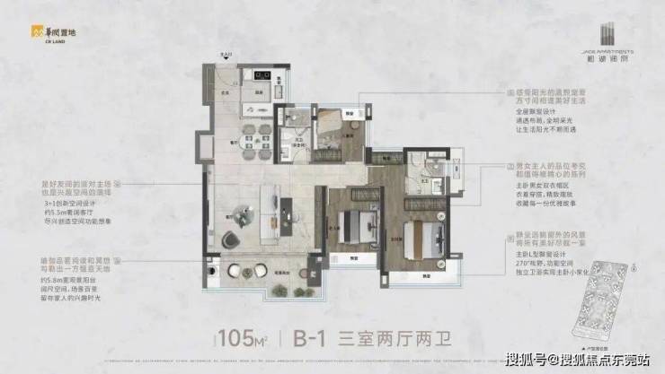 105㎡户型,在市面上普遍都是三房设计,而松湖润府做到了 3+1房,这样的全生命周期户型,让人很难拒绝。