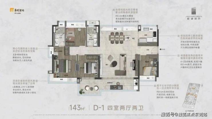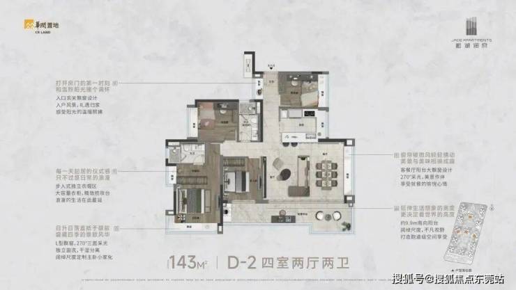至于143㎡是楼王户型,超宽厅设计,巨幕飘窗,视野更通透,最大配置9.9米阳台,简直不要太完美。