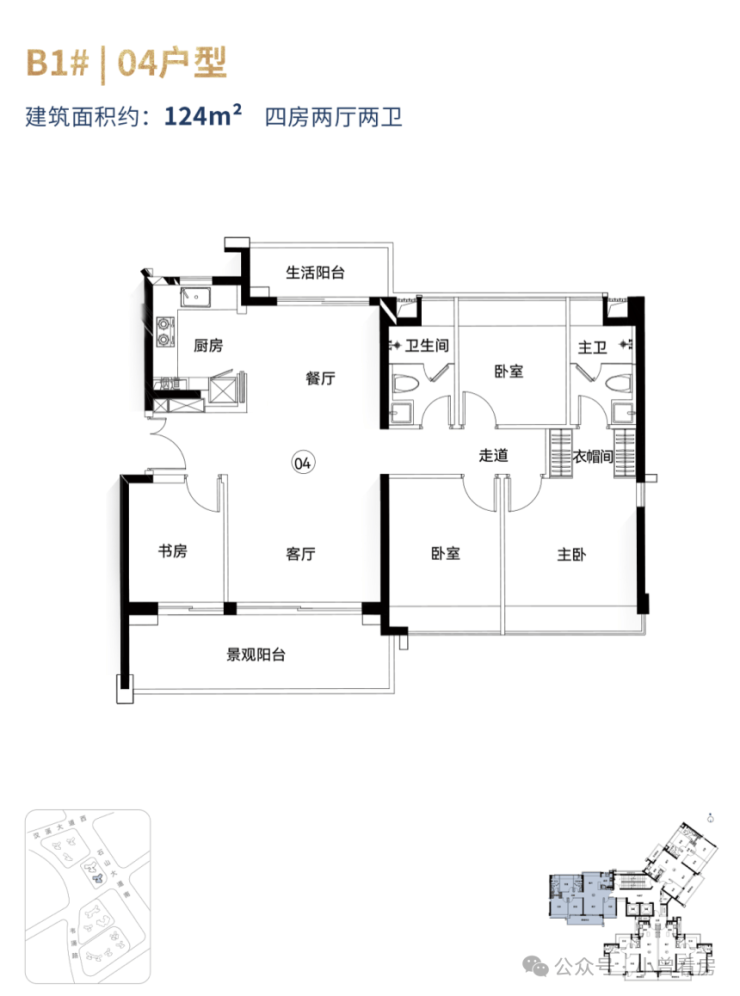 124㎡四房作为PLUS版本,在121㎡的基础上增加了餐厅北侧的生活阳台,景观阳台也延伸至书房,储物与观景功能更完善 。