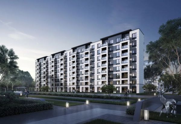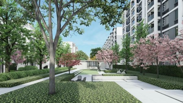 由10栋4层叠加、7栋6-8层洋房组成整体采用现代中式建筑风格效果图 园林景观方面项目打造两大景观中轴结合建筑的高低层次感并通过多种四季花木自然的季节变化烘托移步异景、层次多样的流线型风景效果图 社区采用部分人车分流的设计未来业主车辆可直接从入口进入地下车库营造出宁静的居住氛围