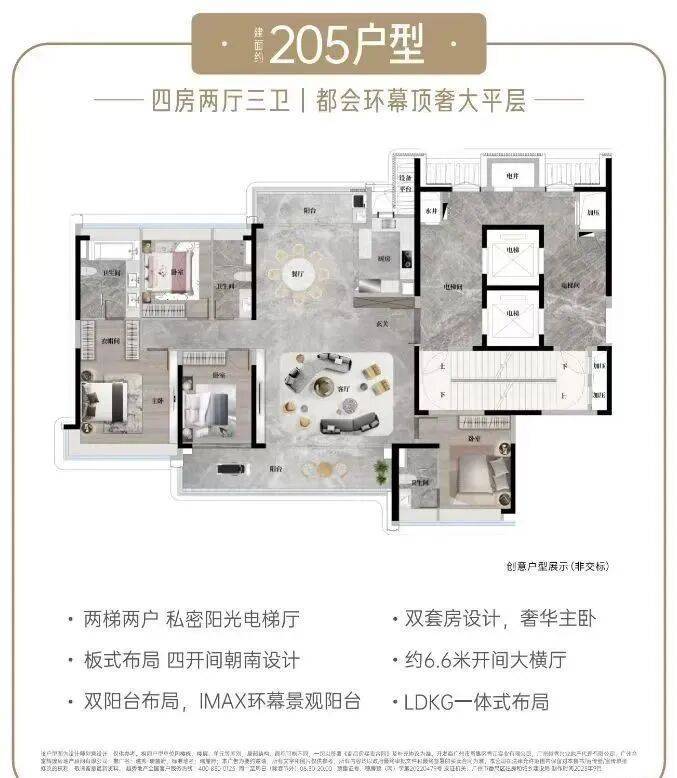 建面约205㎡奢适四房---中轴园林上,环幕景观楼王
