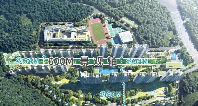 社区内横向园林景观轴长达600米,楼间距超90米。