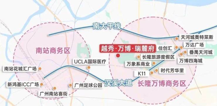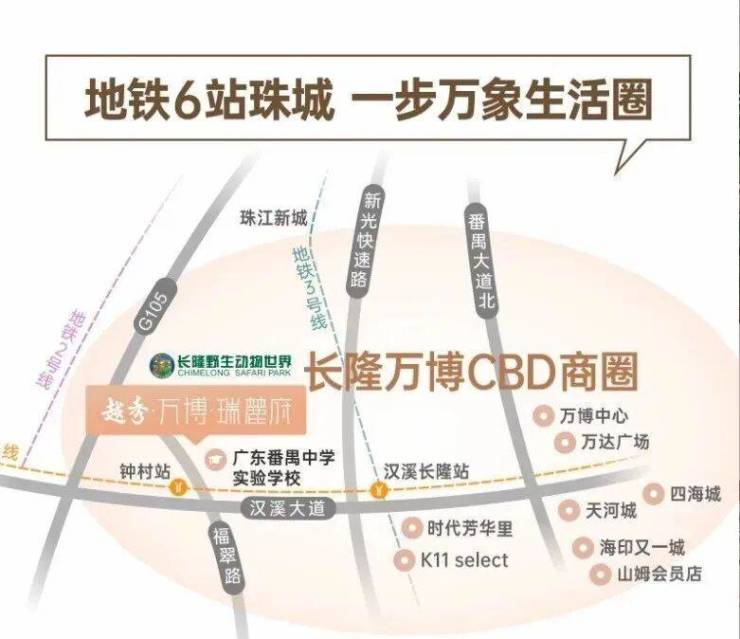 自驾的话,家门口钟顺路连接汉溪大道、南大干线(已开通),双动脉横贯番禺核心,约10分钟长隆万博CBD,约30分钟珠江新城