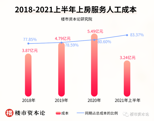招股书显示,报告期内上房服务人工成本占总成本的比例从77.85%上升至83.37%,成本金额也几乎翻倍。