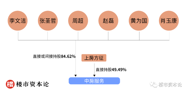 招股书显示,上房方征直接持有公司49.49%的股份,为公司控股股东;背后实控人则足有六人,李文洁、张圣哲、周超、赵磊、黄为国、肖玉康通过直接和间接持有投资公司股权的方式,以合计84.62%可支配股份额度,共同支配公司的经营决策。