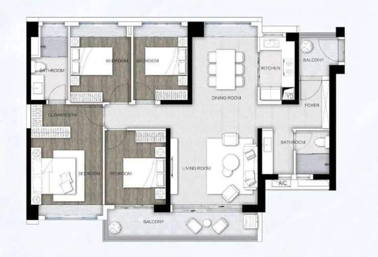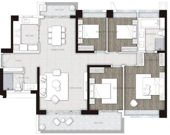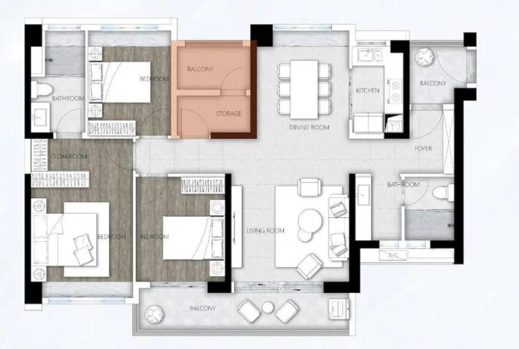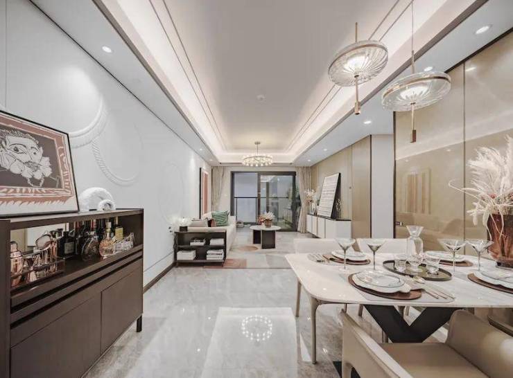 增加了全屋中央空调,客厅配有岩板面板金属包边背景墙
