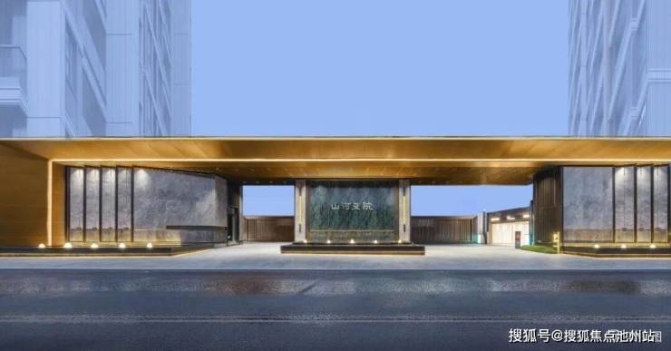 天正山河玺院主入口,三道景墙错落有致,构筑恢弘奢贵的城市门面。天然石材与潺潺迎宾水景相映,组团迎客景观融现代设计美学与中式文化底蕴于一体。大气与精致交织,高贵与艺术共生,为业主开启尊崇归家之旅。