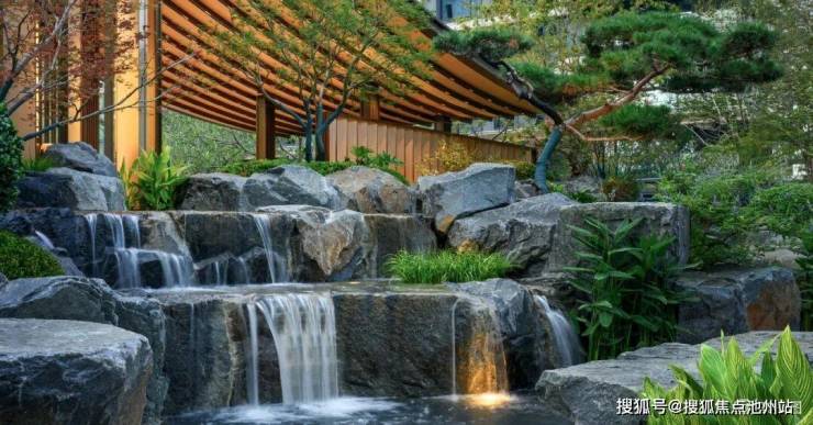约3.6米高的叠瀑飞珠溅玉,山石堆叠暗合“安接跨悬”古法,蜿蜒如《桃夭》词韵。曲桥踏水,淙淙流水声谱写自然乐章,每一处细节皆匠心独运,再现“虽由人作,宛若天开”的东方意境。