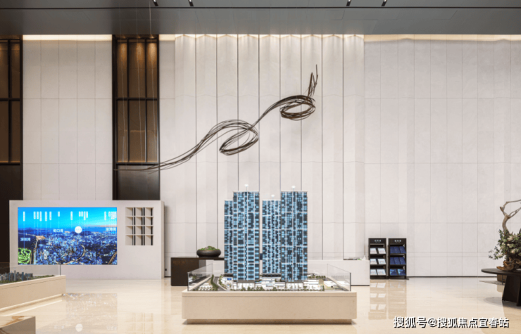 :约12米高的大堂,运用高端进口石材打造奢华空间,定制尊贵而温馨的归家仪式感。