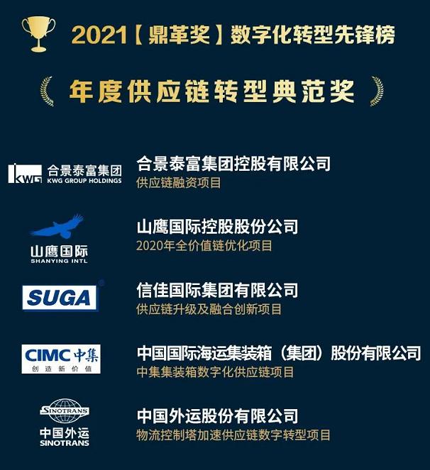 2021鼎革奖数字化转型先锋榜《年度供应链转型典范奖》获奖企业