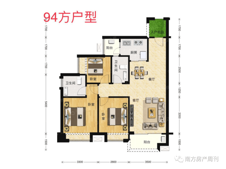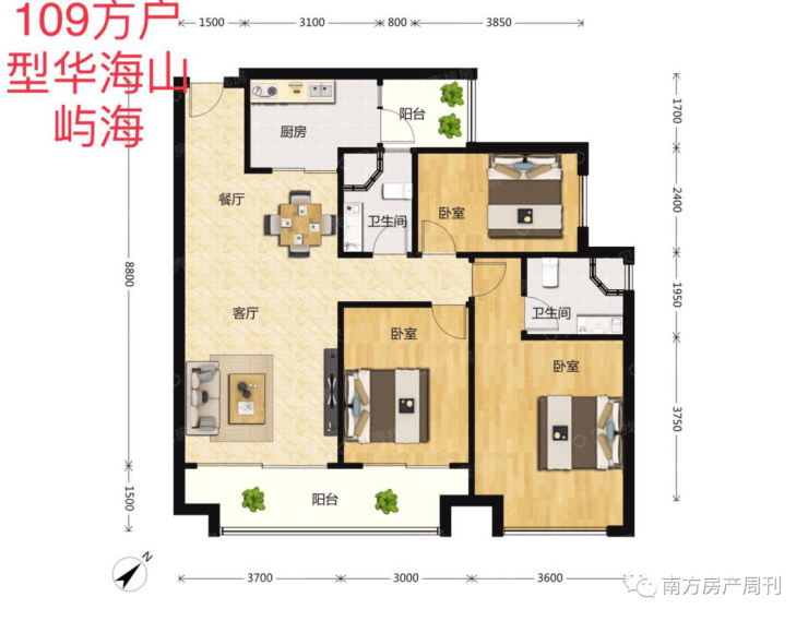 项目在售户型包括94方(三房两卫)、109方(三房两卫)、118方(三房两卫),户型图如下: