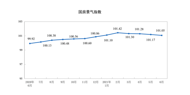 房地产开发景气指数情况方面,6月份,房地产开发景气指数为101.05。
