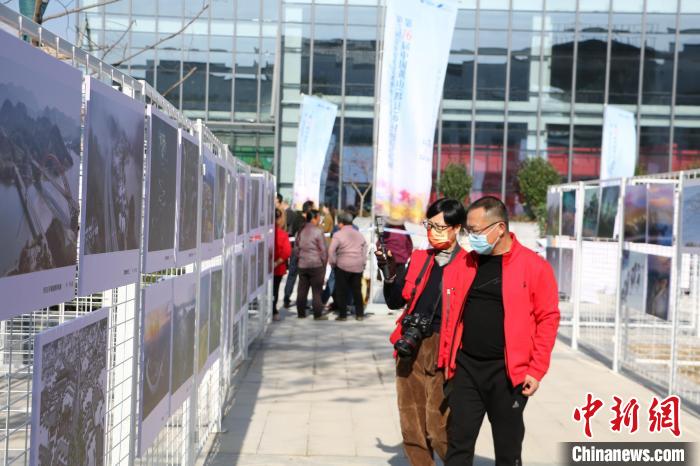 开展当日,迎来许多游客和摄影爱好者观展,其中一幅摄影作品《徽式古典婚礼》引人关注,画面中一名金发碧眼的外国小伙子身着大红唐装和一位黑发黄皮肤的中国姑娘在黟县西递村“喜结连理”,从白墙灰瓦的徽派民居窗格中眺望。