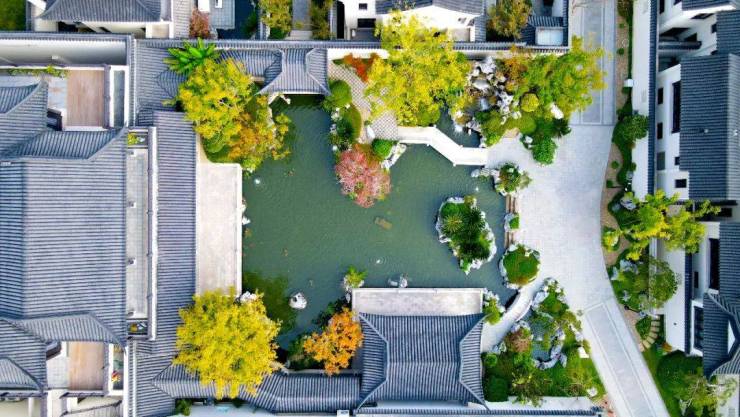 行走在曲折幽深的坊巷间,自然坡地上的高墙深院,阡陌交通,邻里相融,在保持适当距离感的同时,又不会带来生活上的疏离感,江南建筑的错落有致跃然眼前,诠释雅仕生活的虚实相生,平远雅致又卓尔不群。